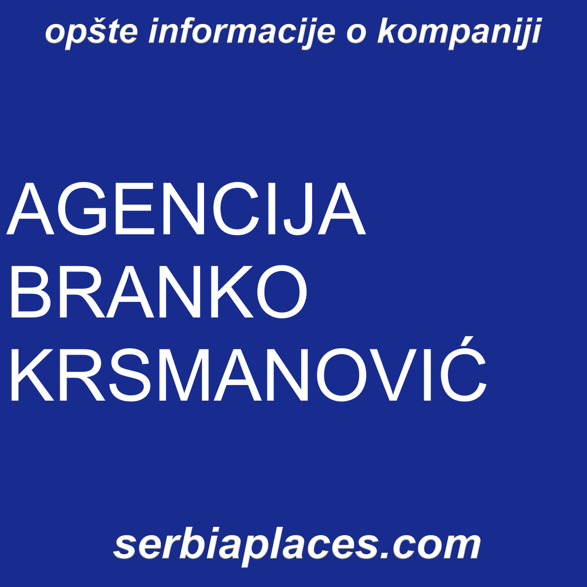 Zvanični podaci kompanije AGENCIJA BRANKO KRSMANOVIĆ