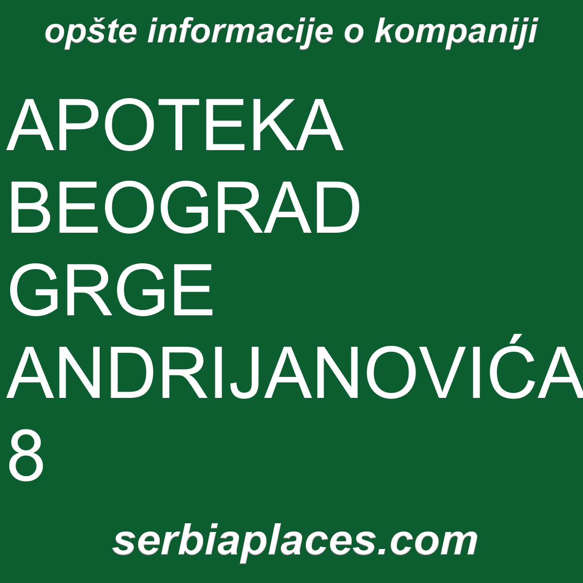 Opšte informacije o kompaniji APOTEKA BEOGRAD GRGE ANDRIJANOVIĆA 8