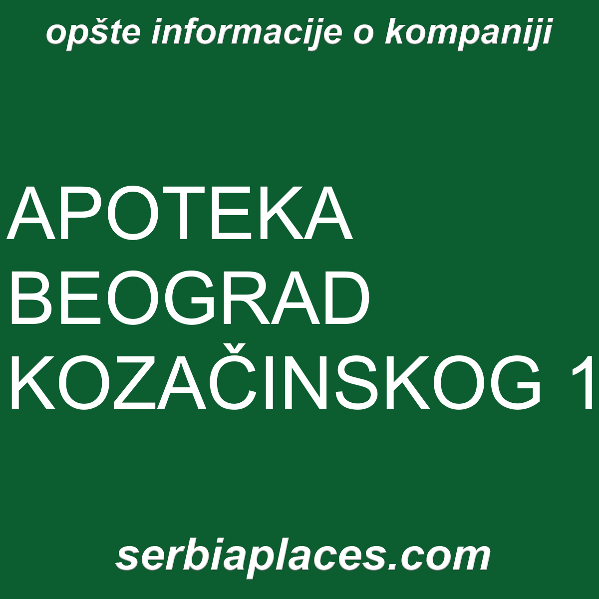 Opšte informacije o kompaniji APOTEKA BEOGRAD KOZAČINSKOG 1