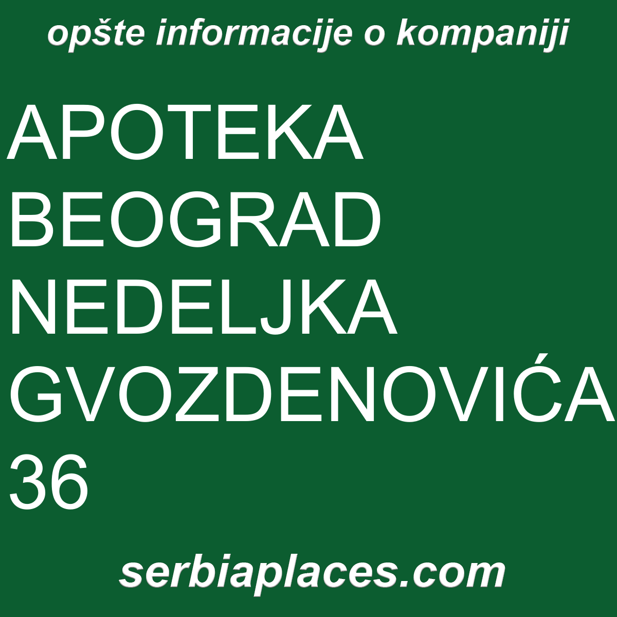 Opšte informacije o kompaniji APOTEKA BEOGRAD NEDELJKA GVOZDENOVIĆA 36