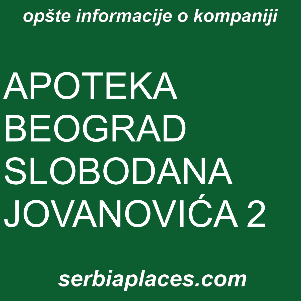 Opšte informacije o kompaniji APOTEKA BEOGRAD SLOBODANA JOVANOVIĆA 2