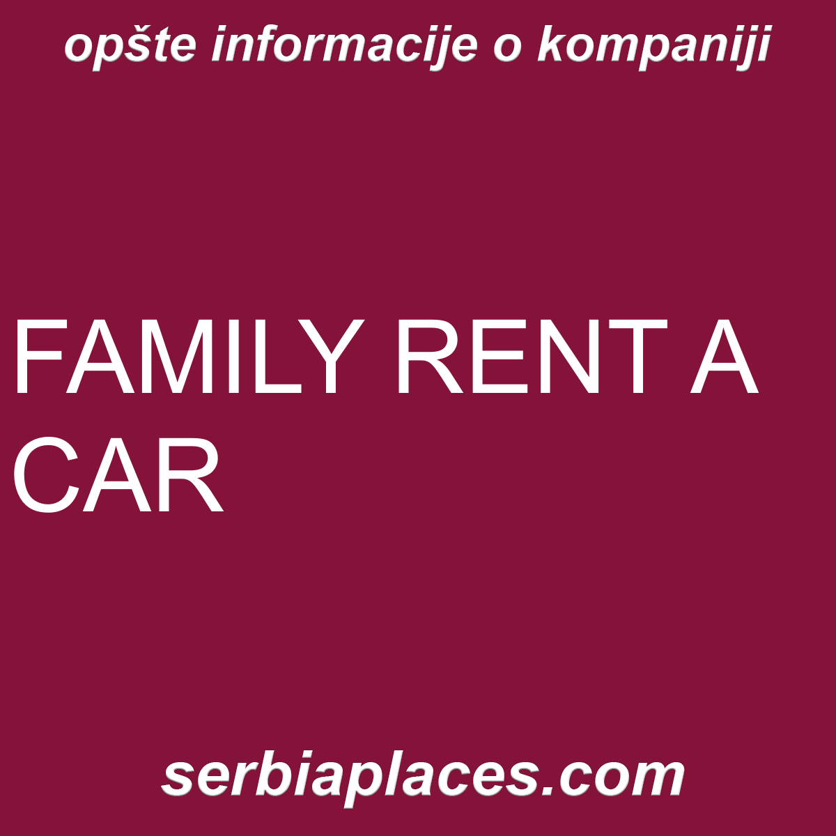 FAMILY RENT A CAR je srpska kompanija koja nudi iznajmljivanje automobila. Pruža kvalitetne usluge, povoljne cene i širok izbor vozila za sve potrebe putnika i porodica.